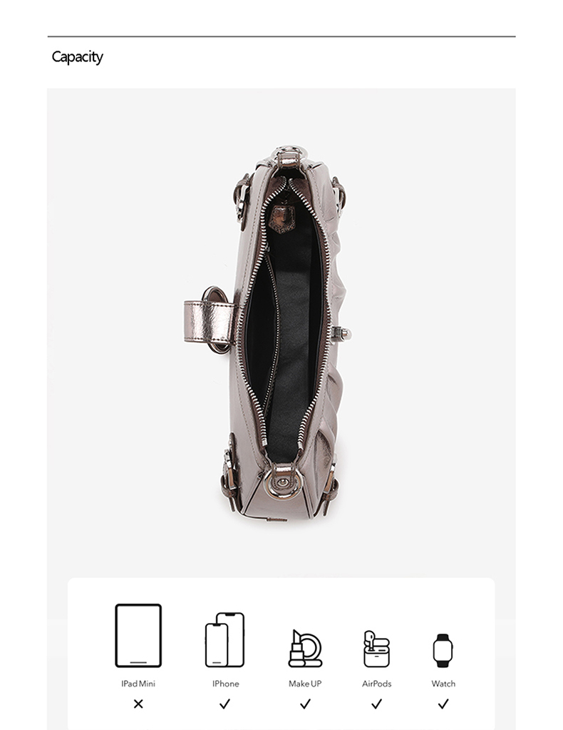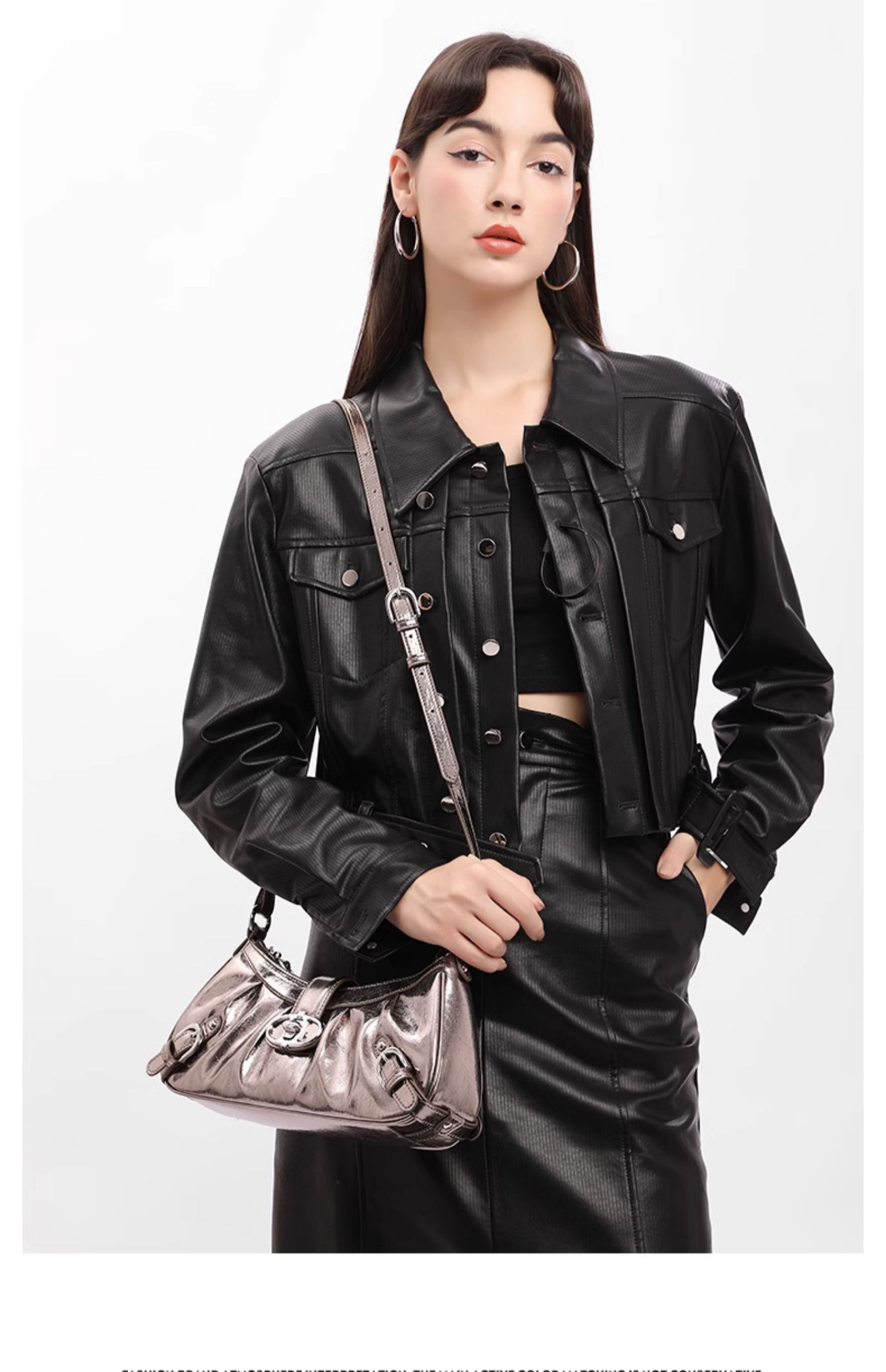 Wrinkled locomotive bag, oil wax cowhide shoulder bag, crossbody bag, chain shouder bag